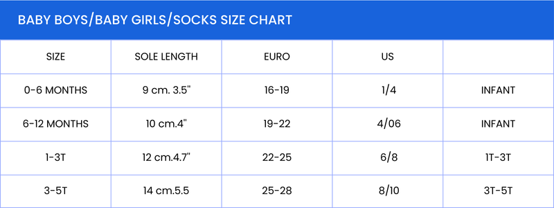 BABY BOYS_BABY GIRLS_SOCKS SIZE CHART