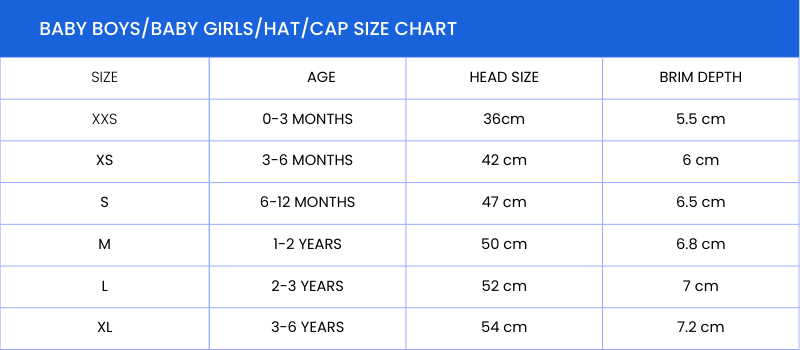 | Baby Hat Sizes | 0-3 Months, 3-6 Months, 6-12 Months, 1-2 Years, 2-3 Years, 3-6 Years |