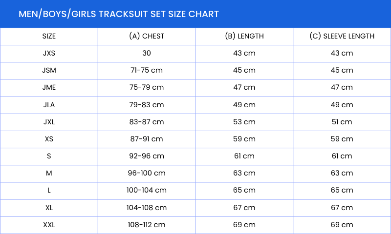 XS, S, M, L, XL, XXL, XXXL